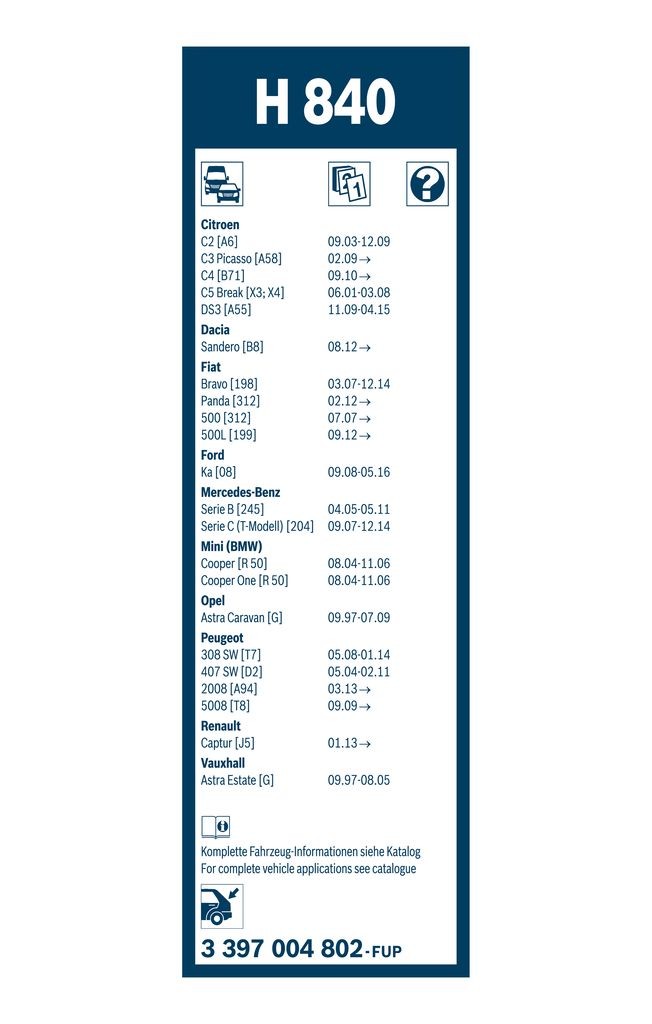 Il tergicristallo BOSCH Twin Rear H 840 offre prestazioni eccellenti e una lunga durata. Con una lunghezza di 290 mm, è progettato per garantire una visibilità chiara in ogni condizione atmosferica. Compatibile con diversi modelli auto, assicura un’installazione facile e sicura.